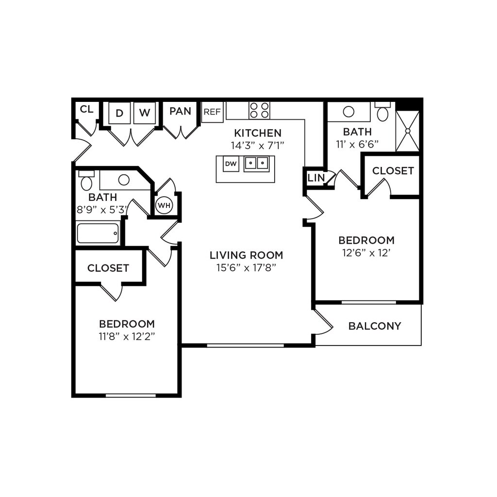 One Bedroom - 755 sqft - Floorplan 2 Apartment Unit: 633Apartment Model: One Bedroom - 755 sqft$1,1701 Bedroom, 1 Bath, 755 sq ftAvailable December 29, 20252 Bedrooms