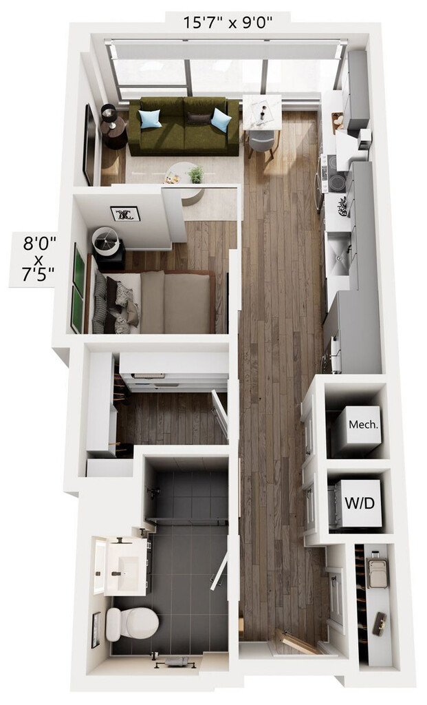 Studio, 1 Bath, 668 sq ftAvailable NowLargest StudioThis is the largest Studio at this PropertyModel Gallery