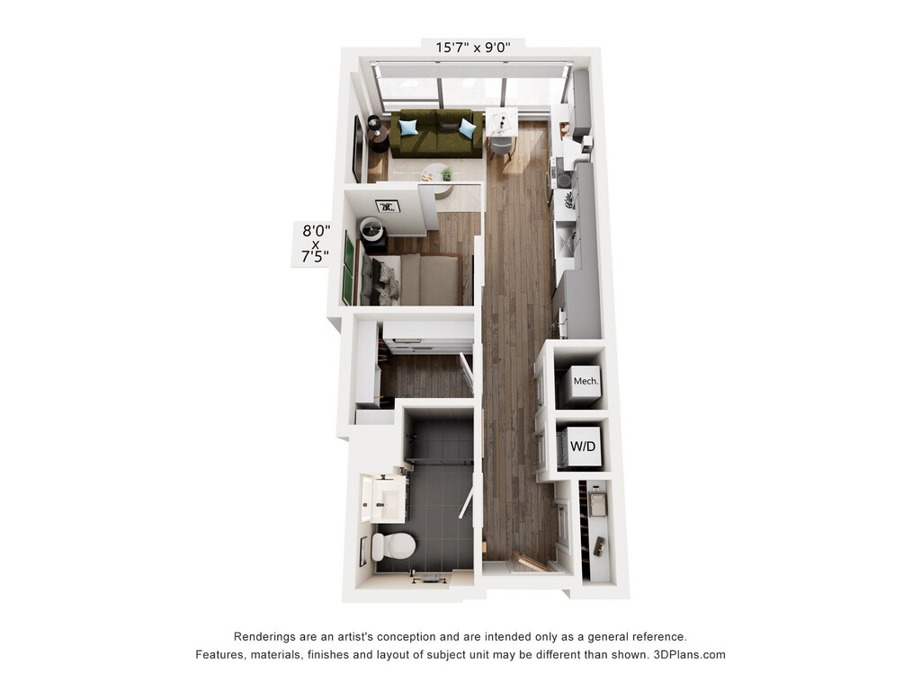 Studio, 1 Bath, 584 sq ftAvailable NowModel Gallery