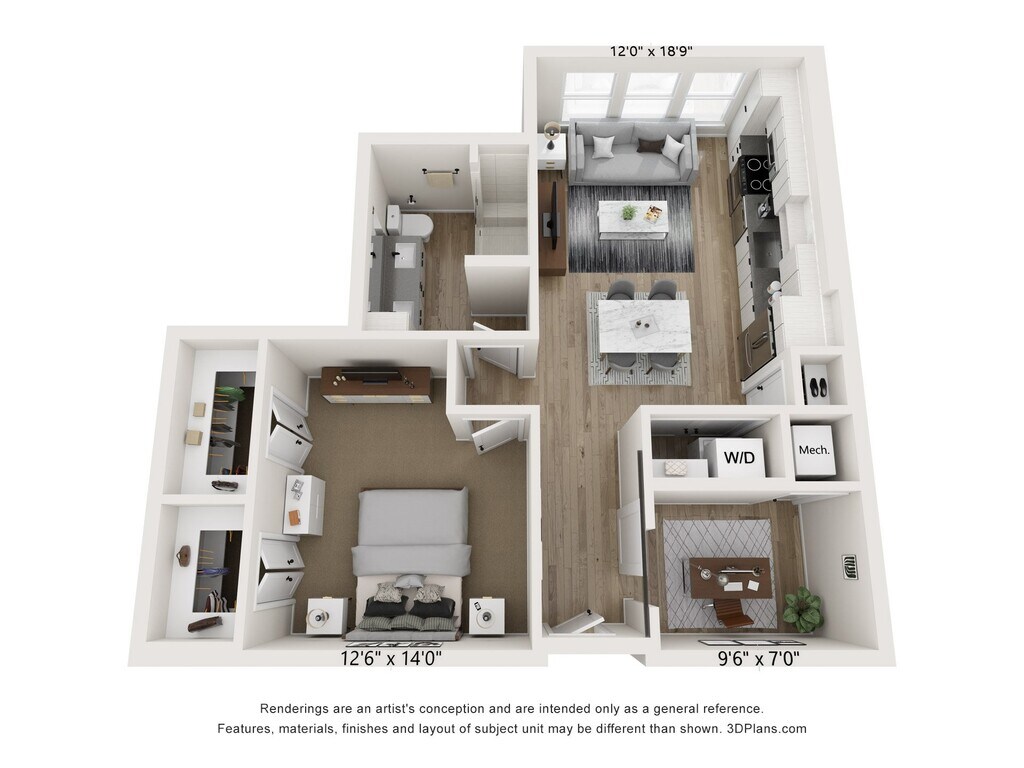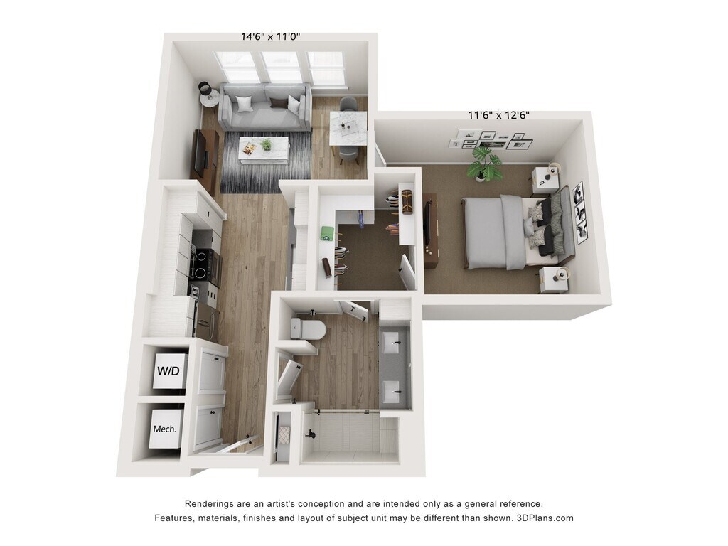 1 Bed, 1 Bath, 689 sq ftAvailable NowModel Gallery