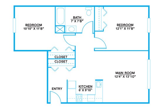 Apartment Model: 2 x 12 Bedroom, 1 Bath, 810 sq ftUnavailable![]()