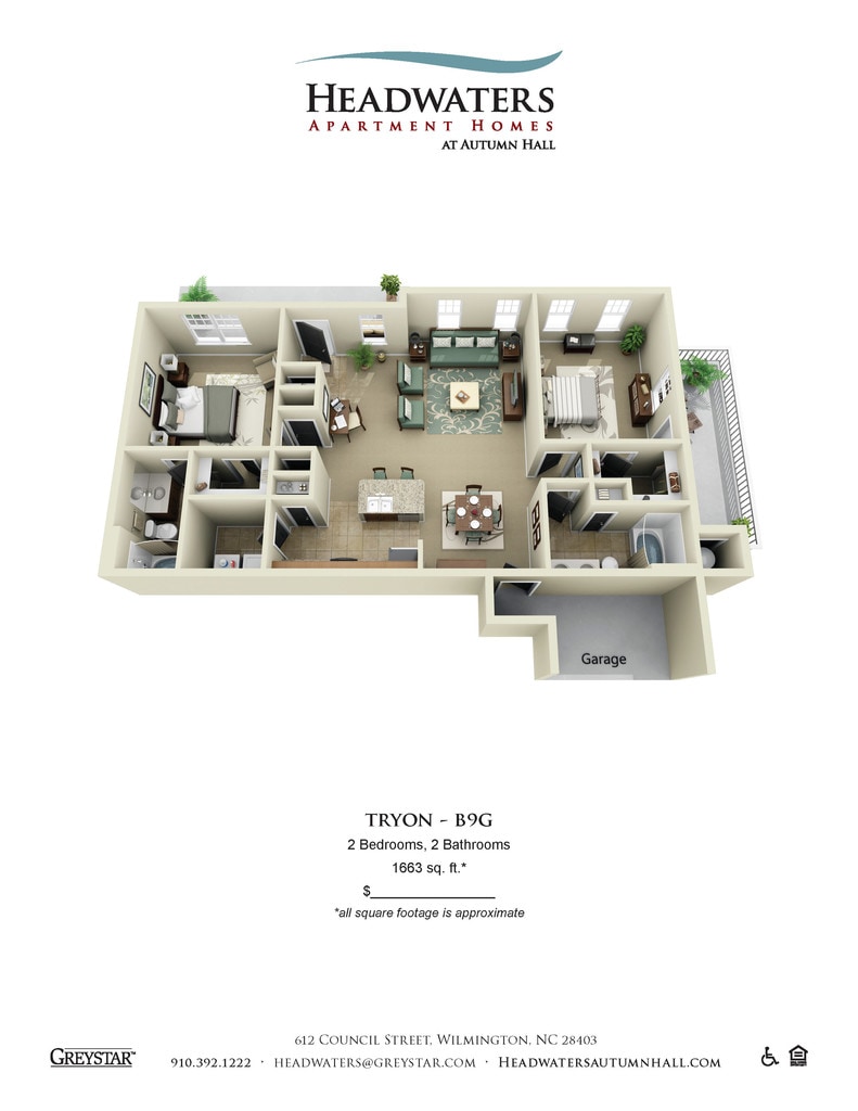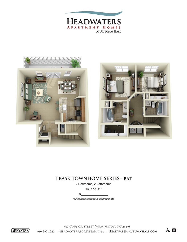 Headwaters at Autumn Hall offers 1 to 3 Bedroom apartments starting from $1,346 and having 704–1,663 sq ft. Here is the current pricing and availability: