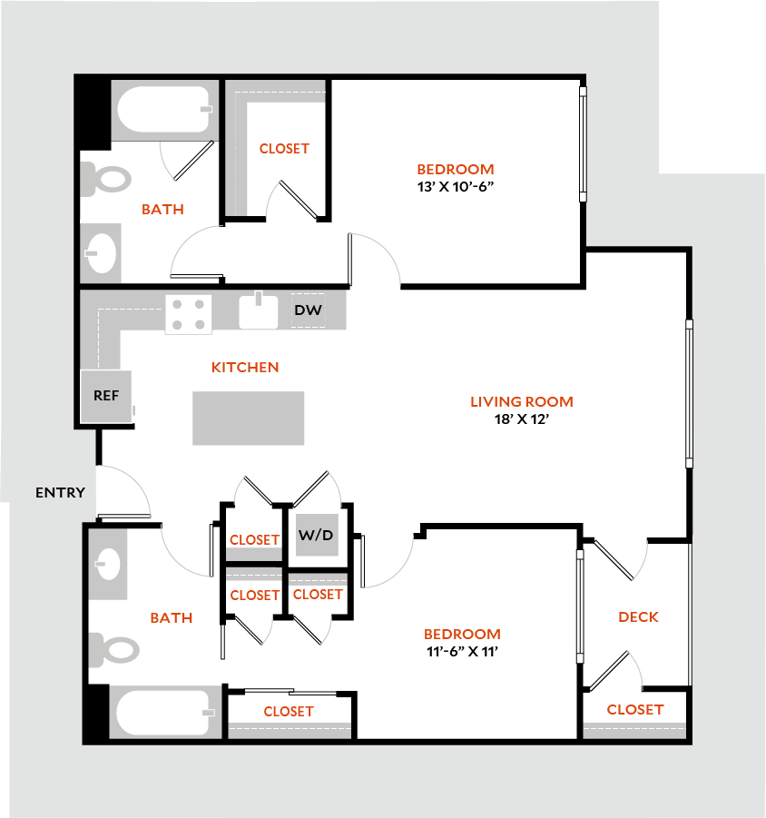 1 Bed, 1 Bath, 751 sq ftAvailable NowModel Gallery