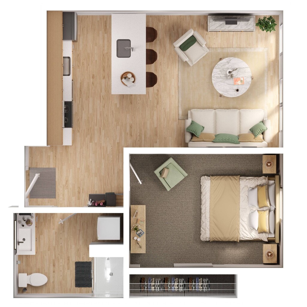 1 Bed, 1 Bath, 680 sq ftModel Gallery