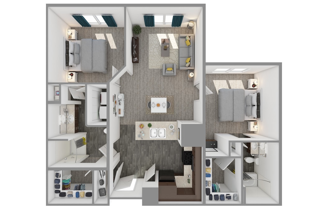 2 Beds, 2 Baths, from 1015 sq ftModel Gallery