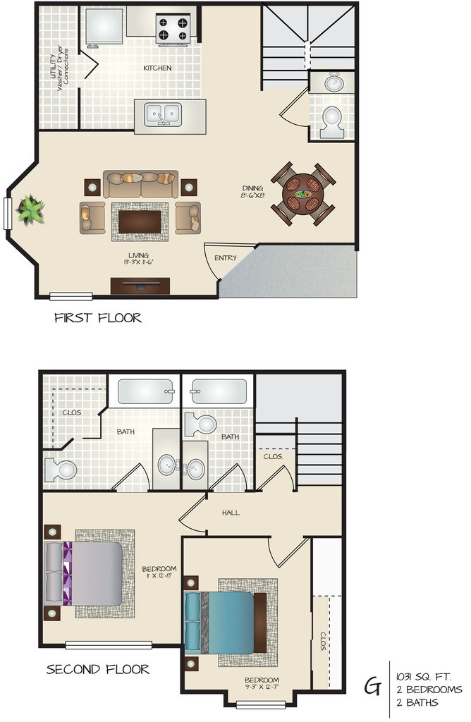 2 Beds, 2.5 Baths, 1031 sq ftAvailable NowLargest 2 BedroomThis is the largest 2 Bedroom at this PropertyModel Gallery