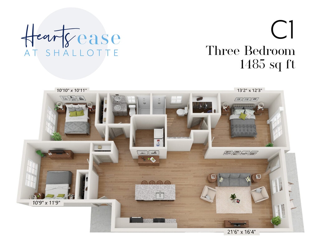 Heartsease Shallotte offers Studio to 3 Bedroom apartments starting from $1,710 and having 670–1,485 sq ft. Here is the current pricing and availability: