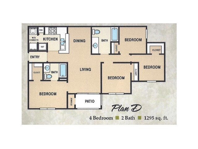 Apartment Model: Plan D4 Bedroom, 2 Bath, 1295 sq ftUnavailable![]()