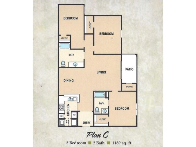 Apartment Model: Plan C3 Bedroom, 2 Bath, 1189 sq ftUnavailable![]()