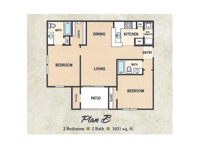 Apartment Model: Plan B2 Bedroom, 2 Bath, 1031 sq ftUnavailable![]()