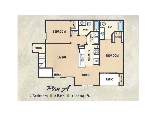 Apartment Model: Plan A2 Bedroom, 2 Bath, 1035 sq ftUnavailable![]()