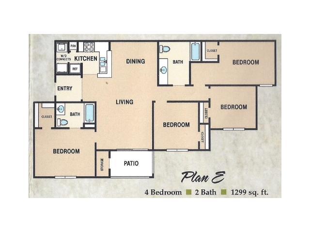 Apartment Model: Plan E4 Bedroom, 2 Bath, 1299 sq ftUnavailable![]()