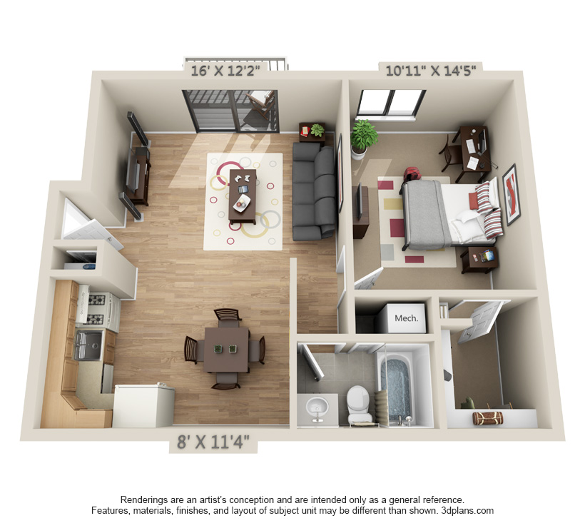 1 Bed, 1 Bath, 642 sq ftModel Gallery