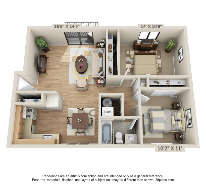 Apartment Model: 2 Bedroom Garden2 Bedroom, 1 Bath, 845 sq ftUnavailable![]()
