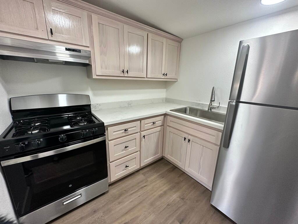 Luxury newly renovated apartments with Free parking in front of unit available in recently renovated complex. Charming cottage style buildings with vinyl plank floor, new stainless-steel fridge, new cabinets, new paint (interior & exterior), new double pane windows, new stainless-steel stove & hood, new A/C, new vanity, toilet, mirror and shower in private bathroom. There is storage onsite for a small fee if desired. Dogs/Cats ok for fee. Tucked away on a 41,00 sq ft lot off a main road you have plenty of privacy & quite yet walking distance to many retails shopping centers, gas, laundry, etc. 45 Minutes to one hour to Sacramento and San Francisco.