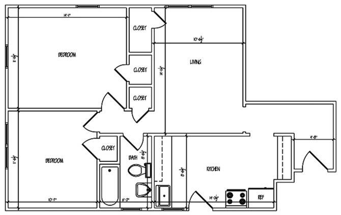 Heights Two Bedroom - Floorplan 1 2 Beds, 1 bath