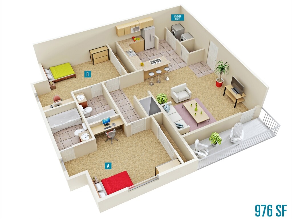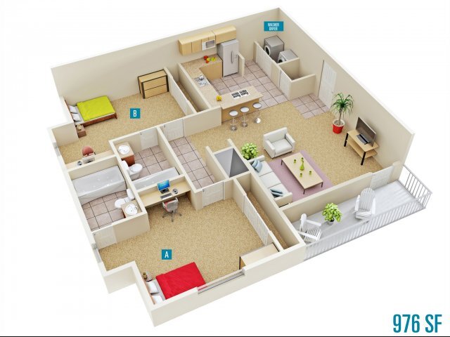 Apartment Model: B1From $7252 Bedroom, 2 Bath, 374-375 sq ftAvailable Now![]()
