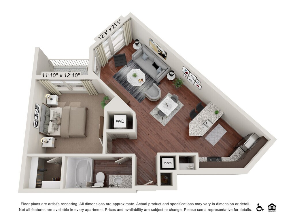 Apartment Model: A1From $1,5951 Bedroom, 1 Bath, 698 sq ftAvailable Now![]()