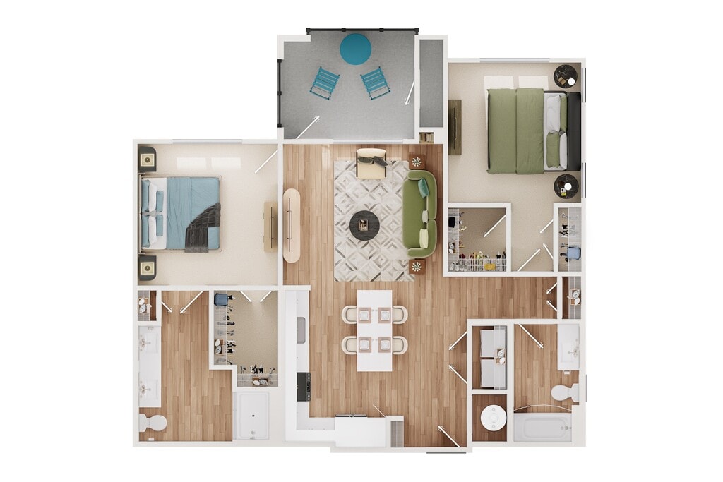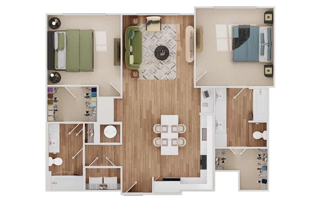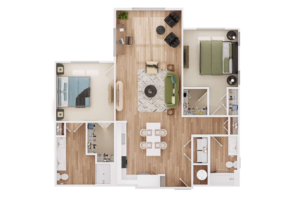 2 Beds, 2 Baths, 1121 sq ftModel Gallery