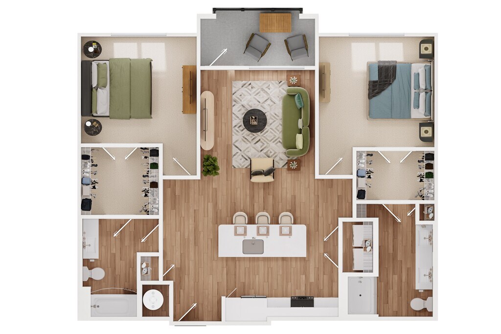 2 Beds, 2 Baths, 1172 sq ftModel Gallery