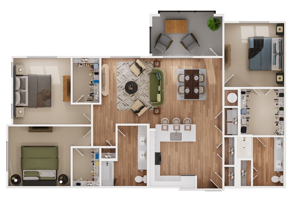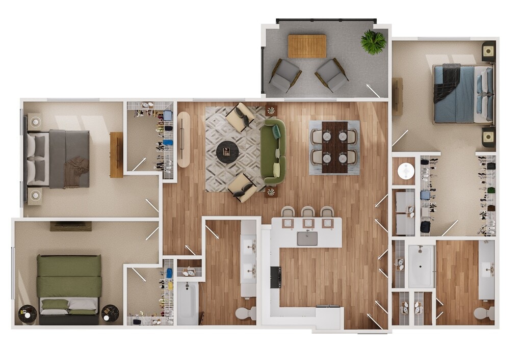 2 Beds, 2 Baths, 1233 sq ftModel Gallery