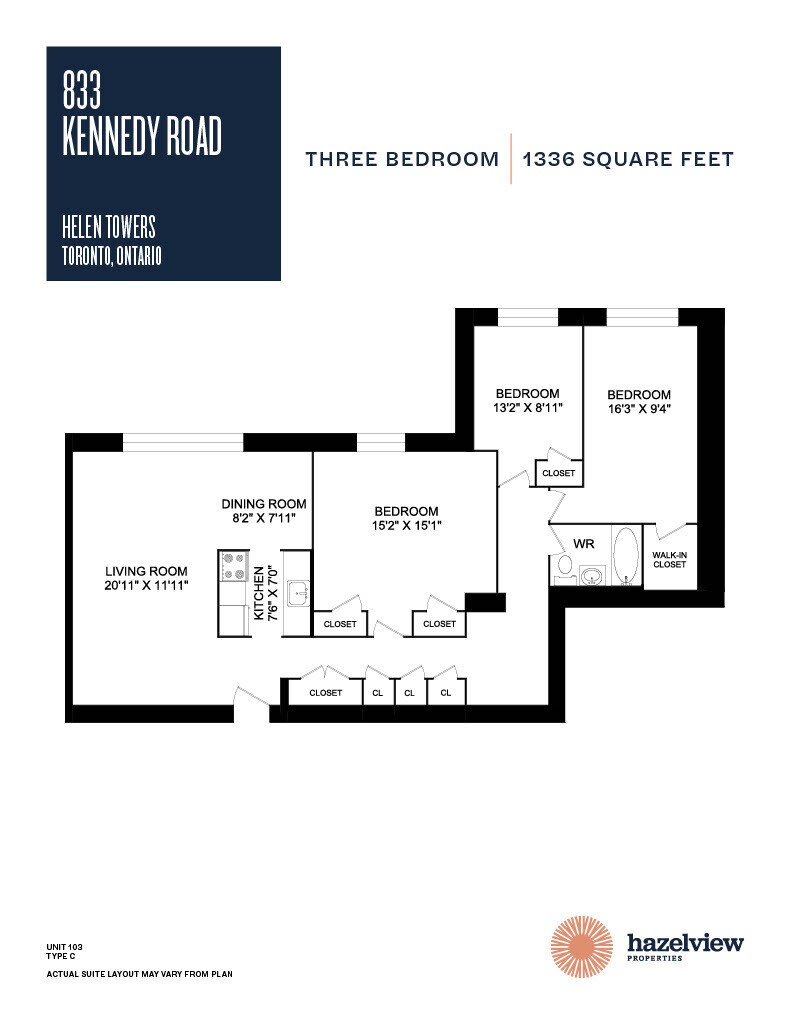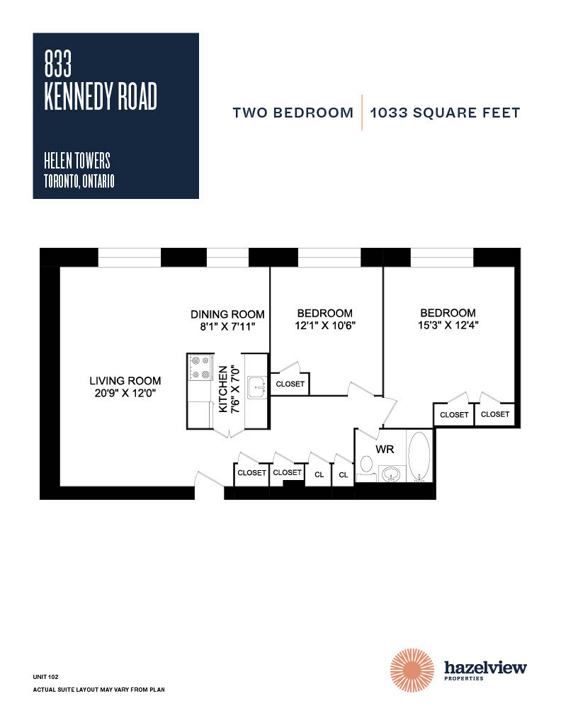 Helen Towers Situated in a family-oriented area of Scarborough, Helen Towers is a wonderful rental community located close to several schools, a childcare centre, a community centre, public library, and shopping. Your home backs onto Treverton Park – the perfect place to walk your dog or take the kids to the playground. There is a grocery store and a Shoppers Drug Mart just steps away on Eglinton Avenue East. The TTC stops outside your door and The Kennedy subway station, the Kennedy GO station, and Scarborough RT are a short walk away – making all parts of Toronto and the GTA easily accessible.All the shopping and entertainment options of Eglinton Town Centre and Eglinton Square are minutes away as well. Centennial College Ashtonbee Campus, Ashtonbee Reservoir Park, Wexford Park and nature trails are all close by.Your bright and spacious, pet-friendly rental apartment features gleaming parquet floors and a private balcony. Enjoy the convenience of on-site laundry facilities, plenty of visitor parking, and parking available for you. Experience the peace of mind that comes with monitored security cameras and a friendly on-site management team – there to handle any maintenance issues that may arise. Helen Towers is a Certified Rental Building.If you're looking for a comfortable, convenient, and family-friendly place to call home, you can stop searching. Helen Towers (833 Kennedy Road) is ready to welcome you. Incentive: • FMR- First Month Rent for Free