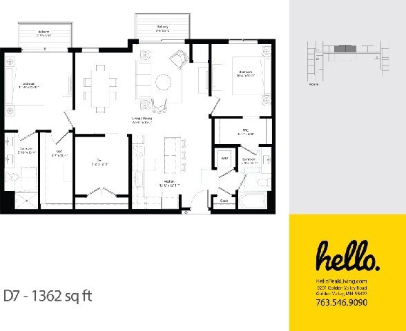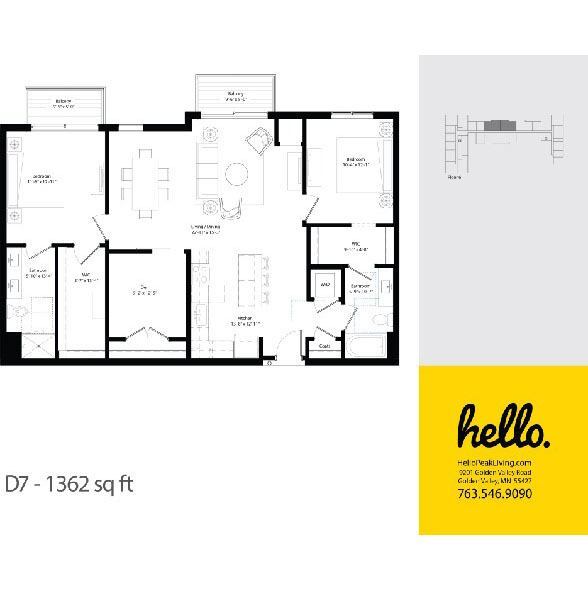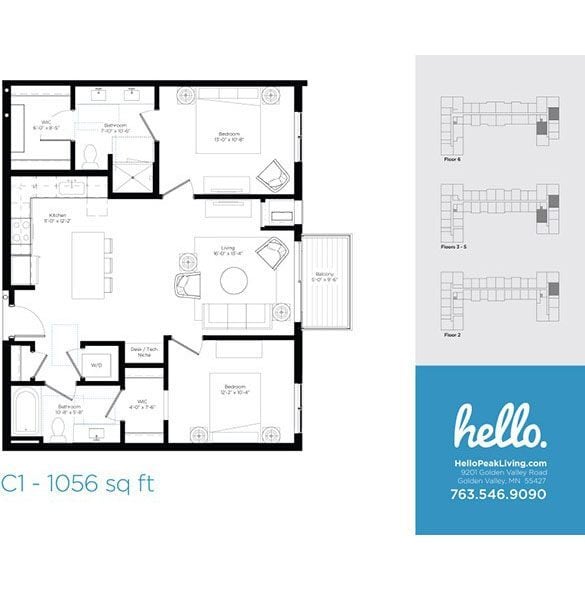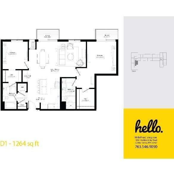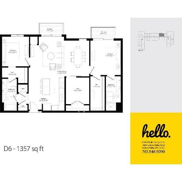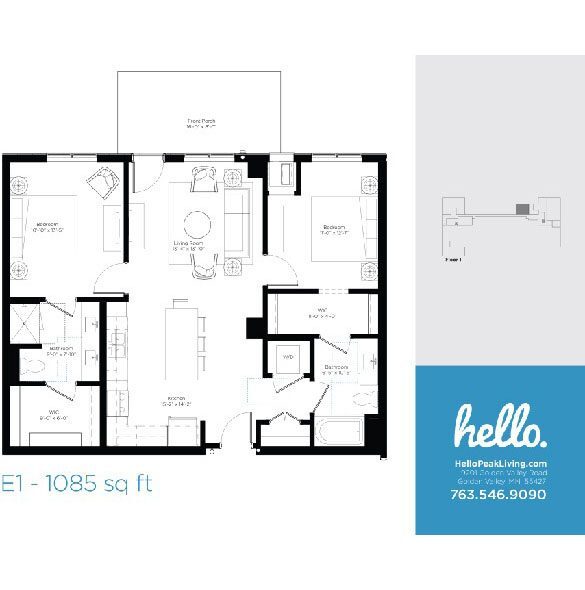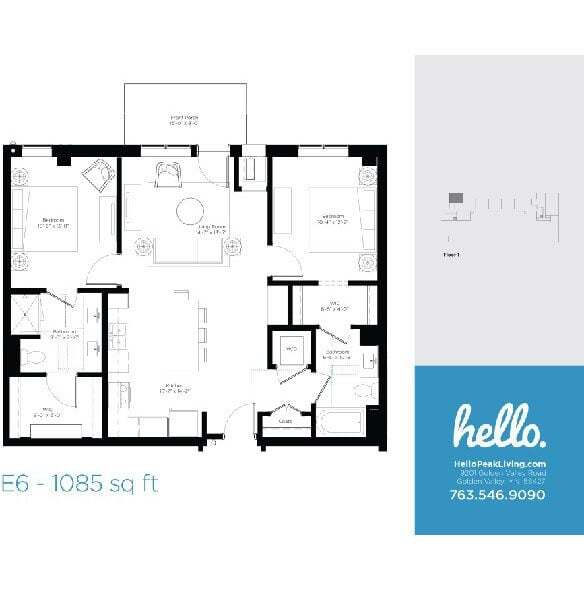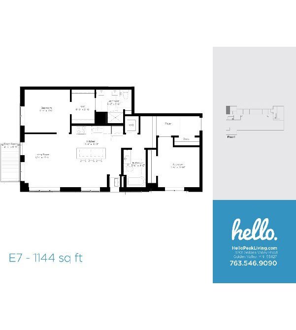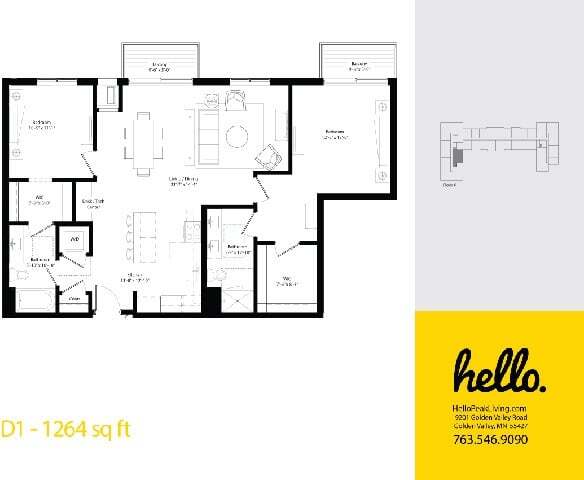 Offering well-designed one- and two-bedroom apartment homes with remarkable interior features such as polished quartz countertops and luxury vinyl plank flooring, and expansive walk-in closets- schedule an appointment to come say HELLO to your new home. At Hello, you'll enjoy access to the city, unmatched urban amenities, and all the beauty of Golden Valley. Enjoy an activity-filled weekend indoors or out. Hello Apartments features a lobby bar and second-floor clubroom with games, comfortable seating as well as a full kitchen for private get-togethers or resident events such as cooking demos and holiday celebrations.Hello is proudly managed by Peak Living. At Peak Living, our mission is to lead the property management industry by creating communities where our residents love to live and our employees love to work. Please visit for more information.