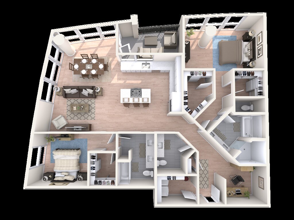 1 Bed, 1 Bath, 858 sq ftModel Gallery