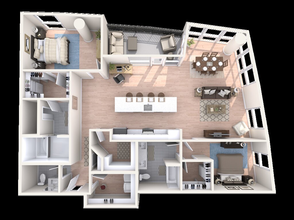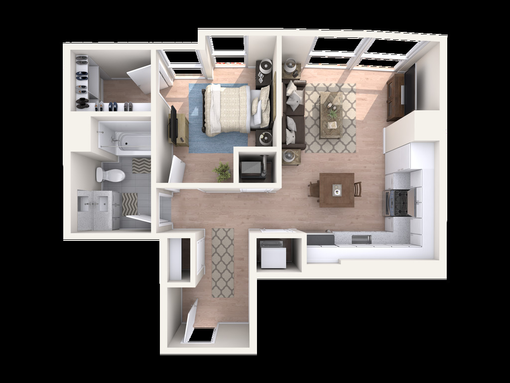 1 Bed, 1 Bath, 841 sq ftModel Gallery
