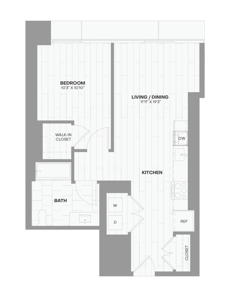 Studio, 1 Bath, 590 sq ftPlus FeesAvailable NowModel Gallery