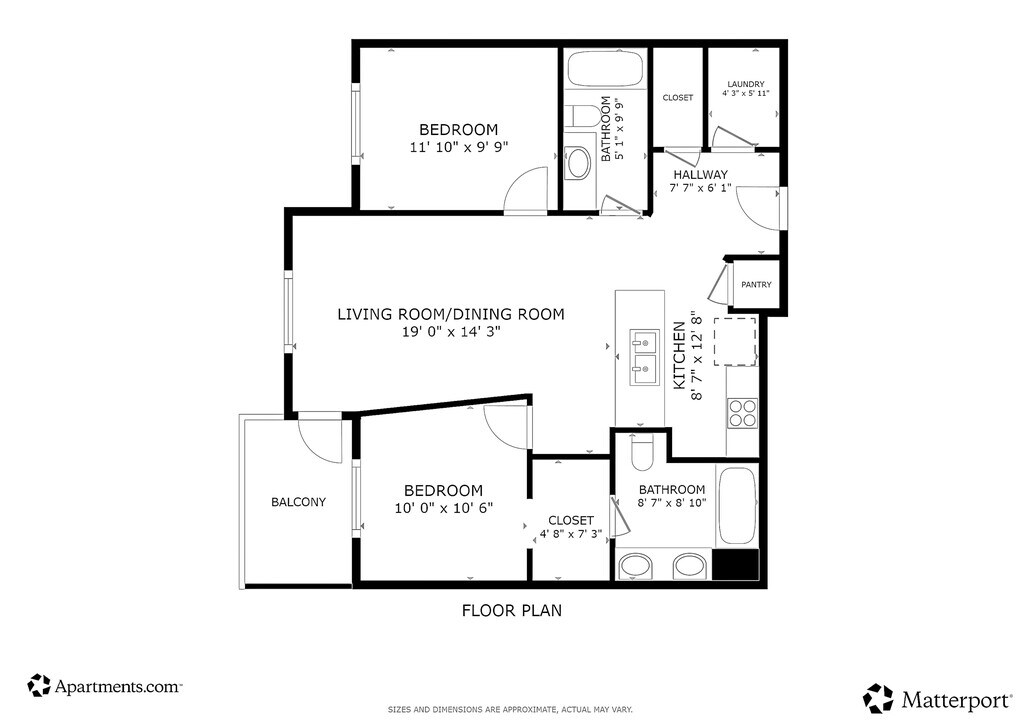 Apartment Model: 1 Bedroom + Den$1,5101 Bedroom, 1 Bath, 825 sq ftUnavailable1 Bedroom + Den - Floorplan 1 2 Bedrooms