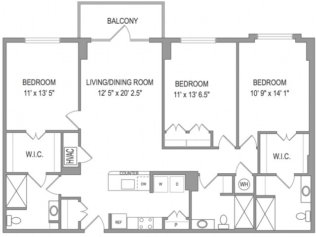 3x3 Balcony - Floorplan 1 Apartment Unit: 402Apartment Model: 3x3 Balcony3 Bedroom, 3 Bath, 1330 sq ftAvailable April 15, 2026![]()