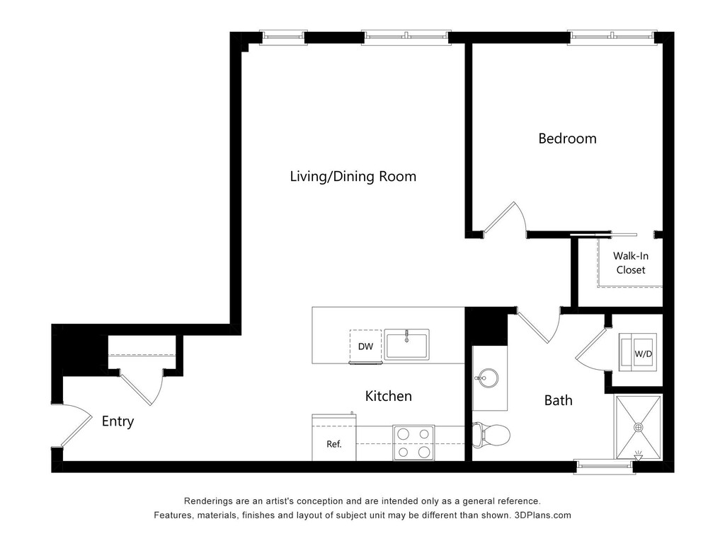 ST | Studio - Floorplan 1 Apartment Unit: 308Apartment Model: ST | StudioStudio, 1 Bath, 651 sq ftAvailable Now1 Bedroom