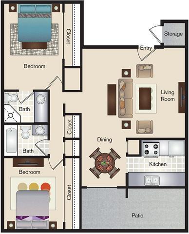 Apartment Model: 2-2 AFrom $8692 Bedroom, 2 Bath, 990 sq ftAvailable Now![]()