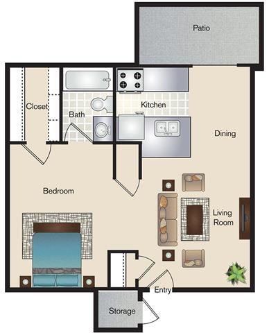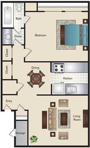 Apartment Model: 1-1-BFrom $6591 Bedroom, 1 Bath, 745 sq ftAvailable Now![]()