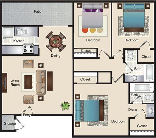 Apartment Model: 3x2From $1,2493 Bedroom, 2 Bath, 1368 sq ftAvailable Now![]()