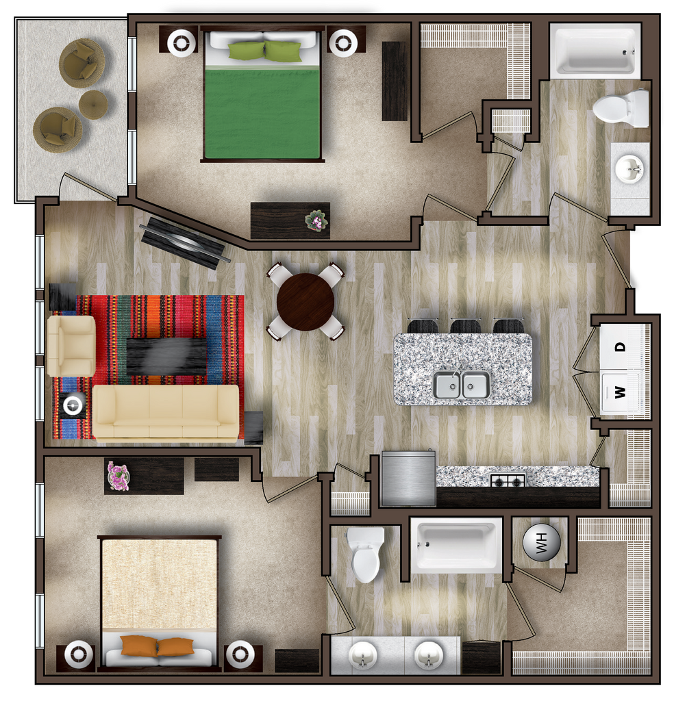 1 Bed, 1 Bath, 762 sq ftAvailable NowModel Gallery