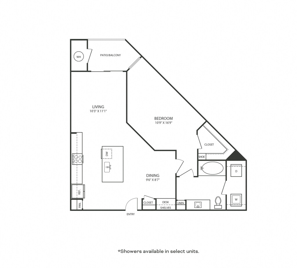 Studio, 1 Bath, 603 sq ftAvailable NowModel Gallery