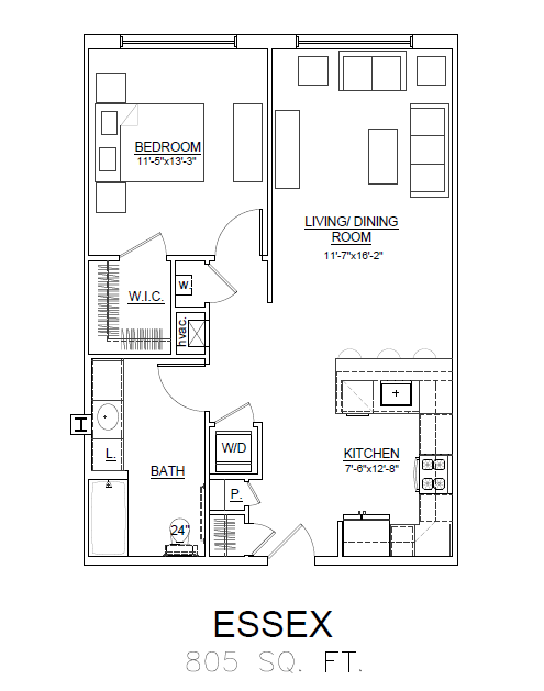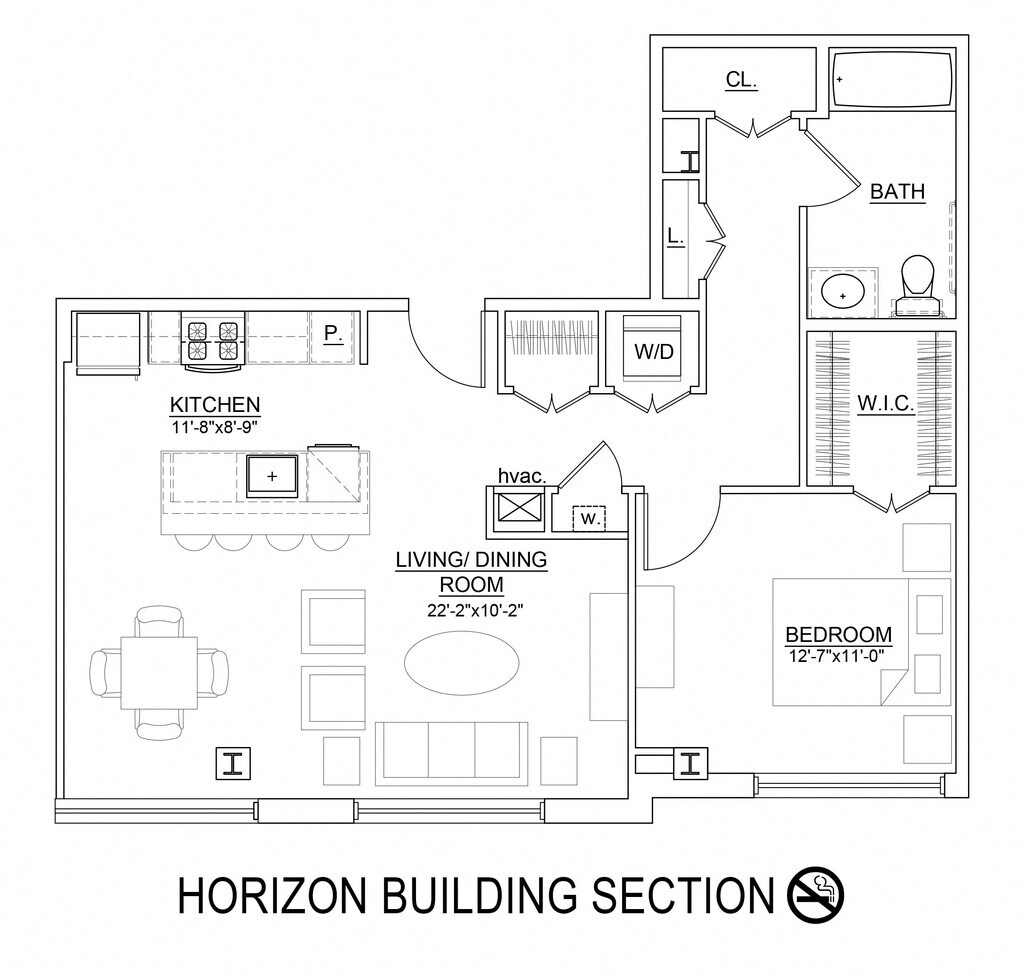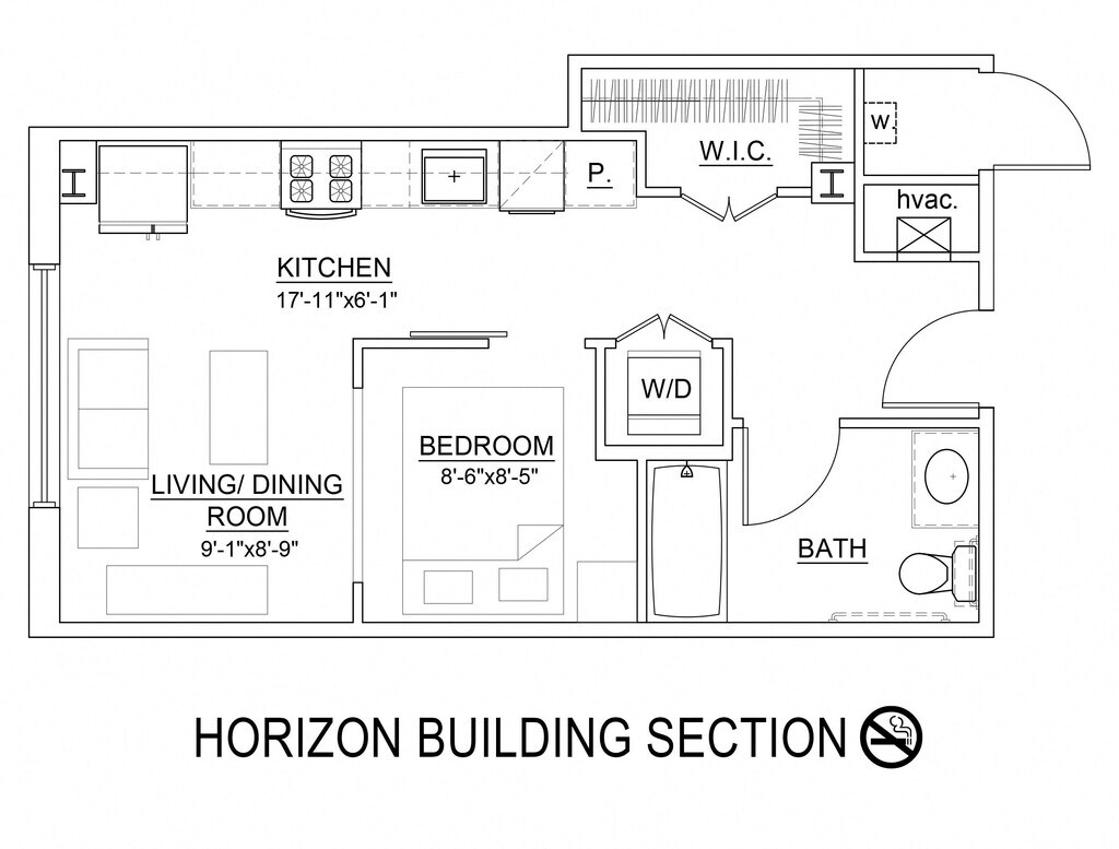 Atlantic - Floorplan 1 Apartment Unit: 210-219Apartment Model: AtlanticStudio, 1 Bath, 495 sq ftAvailable Now1 Bedroom