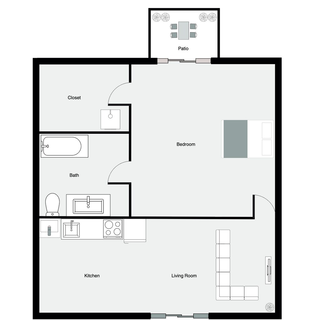 1 Bed, 1 Bath, 500 sq ftModel Gallery