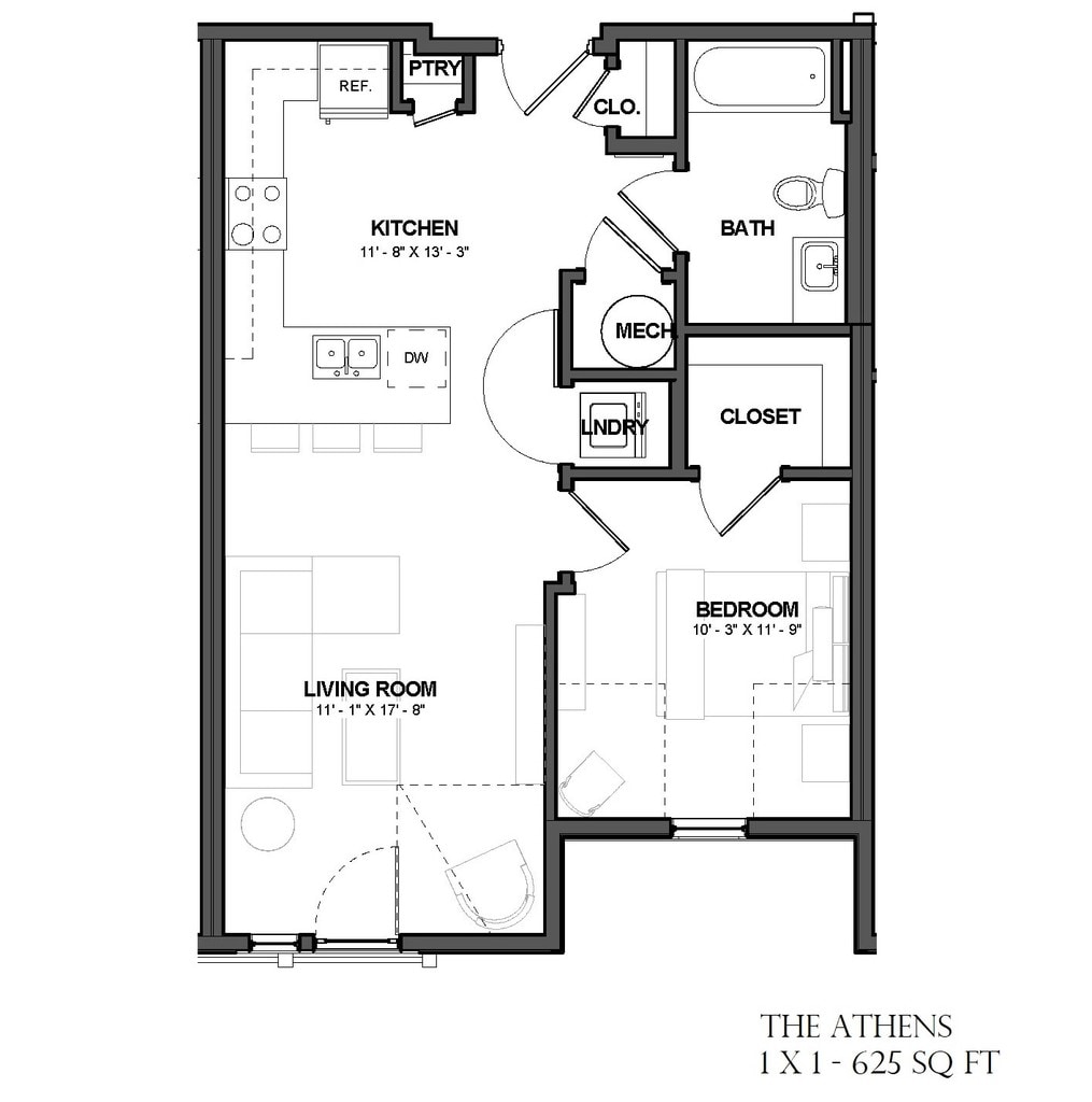 1 Bed, 1 Bath, 620 sq ftModel Gallery