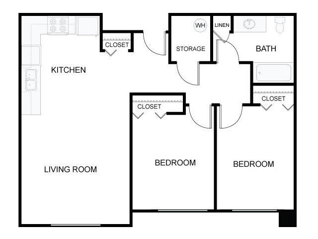 Apartment Model: 2 Bedroom2 Bedroom, 1 Bath, 950 sq ftUnavailable2 Bedroom - Floorplan 1