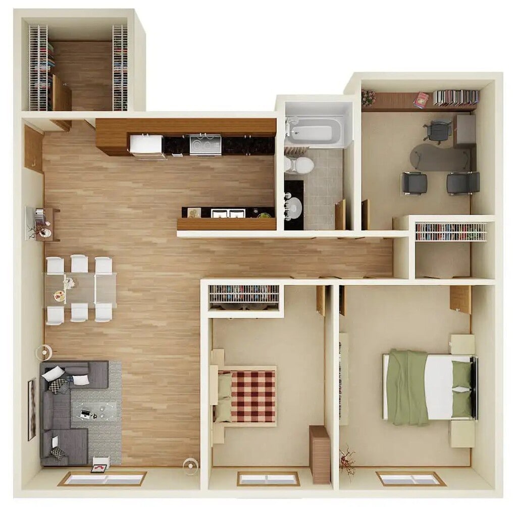 Apartment Model: Auburn w/Den2 Bedroom, 1 Bath, 1080 sq ftAvailable December 22, 2025FloorplansPhotos![]()