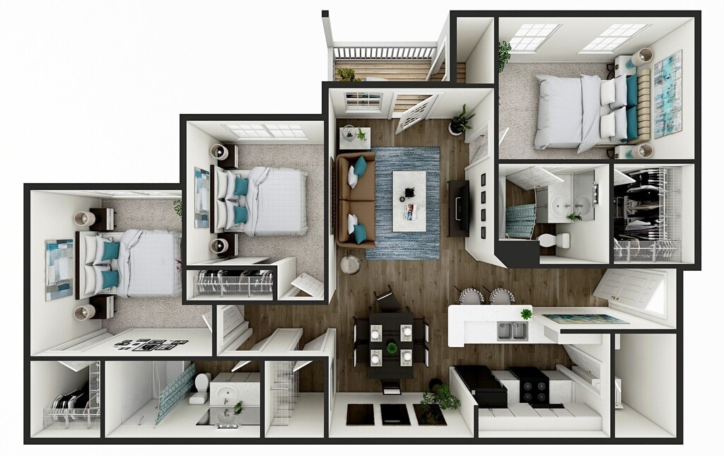 Apartment Model: 3 BedroomFrom $1,2343 Bedroom, 2 Bath, 1275 sq ftAvailable Now![]()