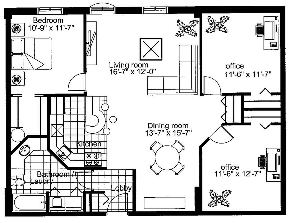 2 Bed 1 Bath A - Loft I - Floorplan 1 2 Bed 1 Bath C - Loft I