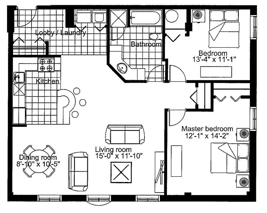 2 Beds, 1 Bath, 1078 sq ftLargest 2 BedroomThis is the largest 2 Bedroom at this PropertyModel Gallery