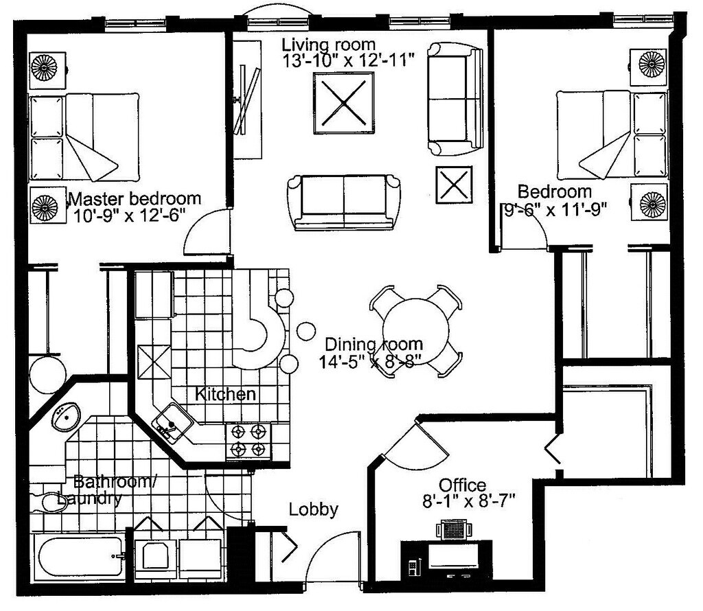 1 Bed 1 Bath A - Loft I - Floorplan 1 2 Bedrooms