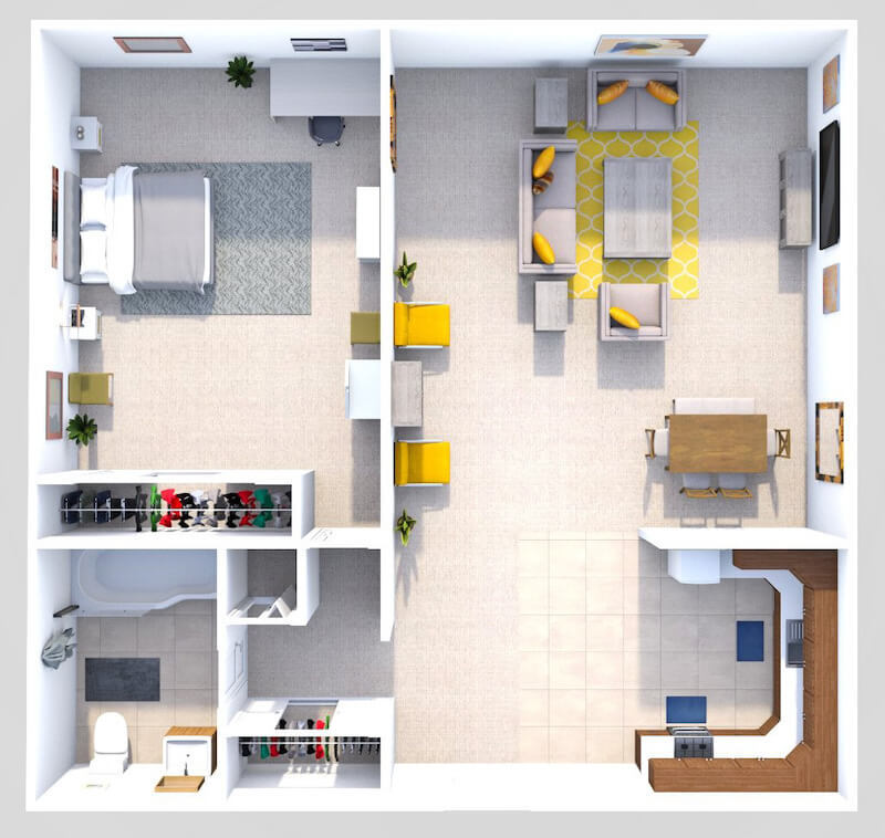 Studio, 1 Bath, 500 sq ftModel Gallery