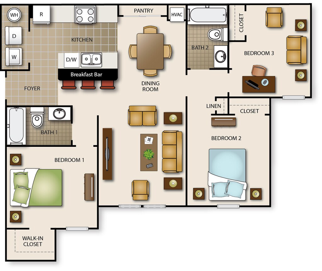 3 Beds, 2 Baths, 1046 sq ftAvailable NowModel Gallery