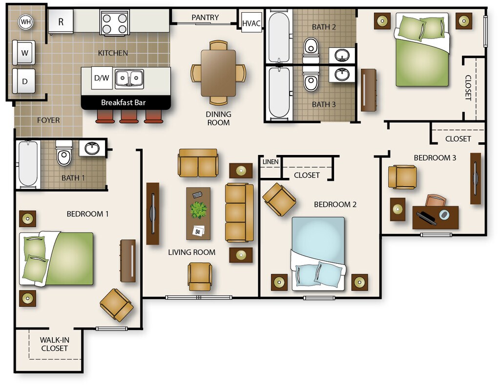 4 Beds, 3 Baths, 1197 sq ftAvailable NowModel Gallery